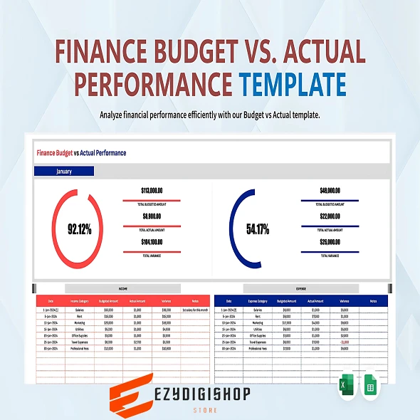 Unlock the power of financial planning with the Finance Budget vs Actual Performance Template from Designed to help you take control of your finances, this template is perfect for anyone looking to master their budgeting and forecasting skills.